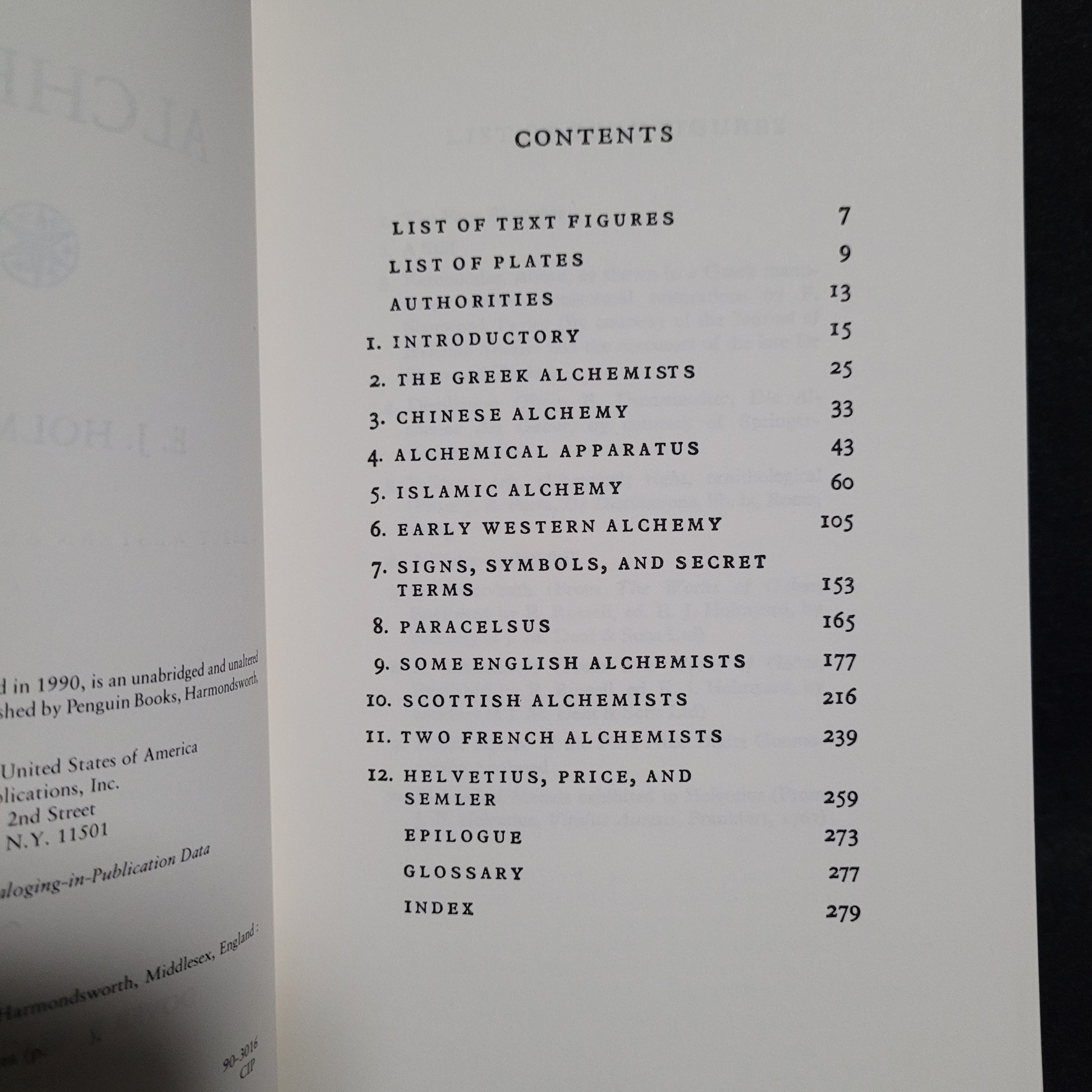 E.J. Holmyard. Alchemy. New York: Dover Publications Inc., 1990. Paperback. 284 pages. Unabridged Dover (1990) republication of the edition originally published by Penguin Books, 1957.