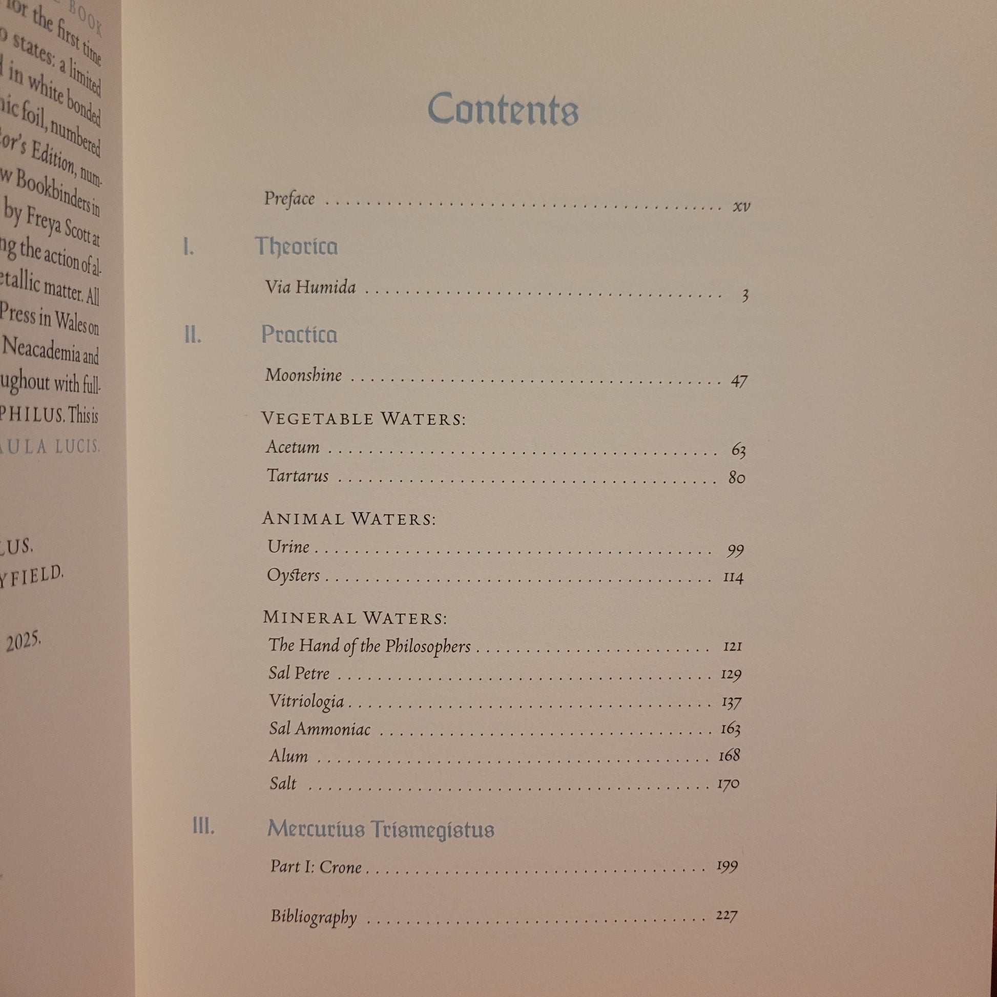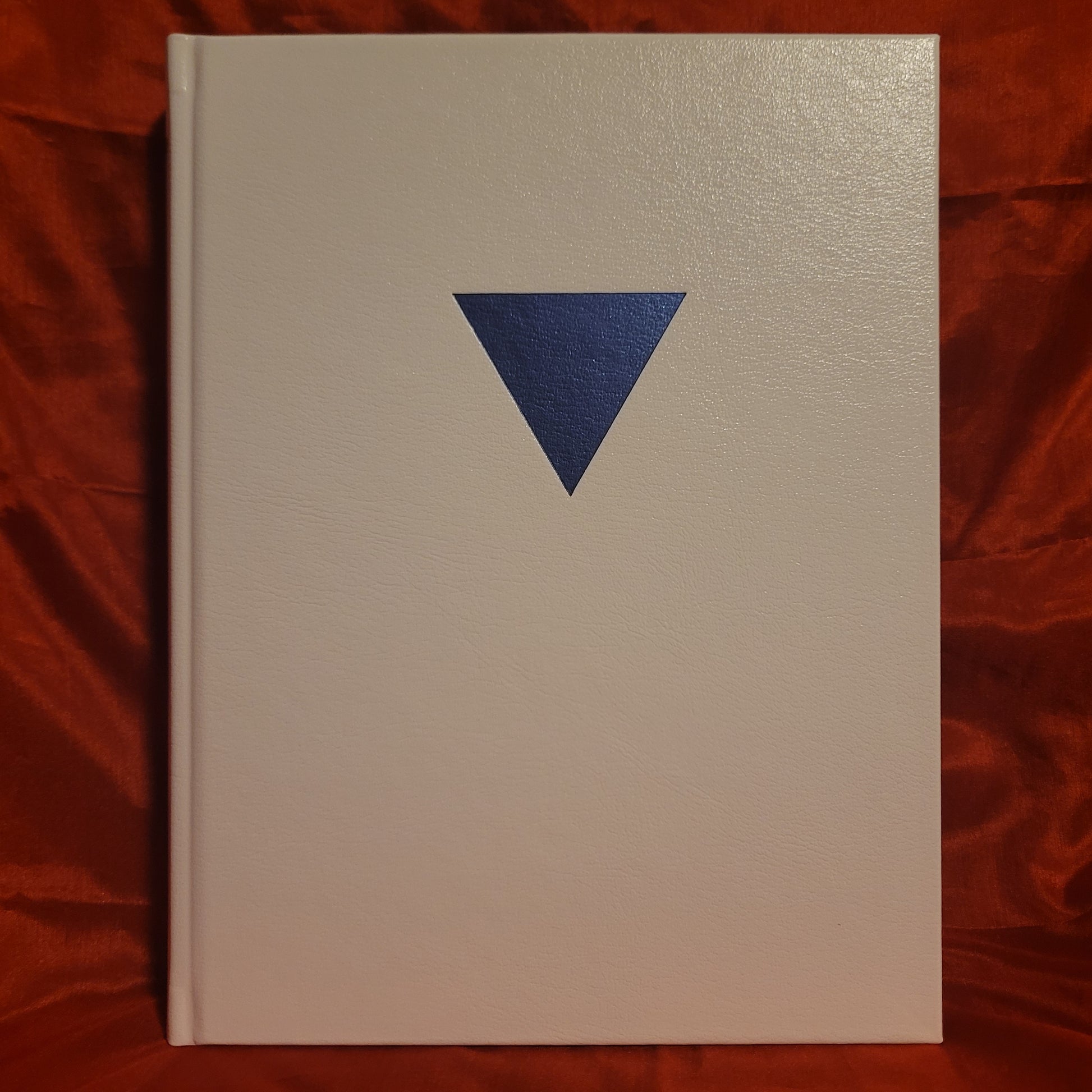 - Stamped with blue foil on front cover and spine, with alchemical symbols of water and fire debossed on both sides.