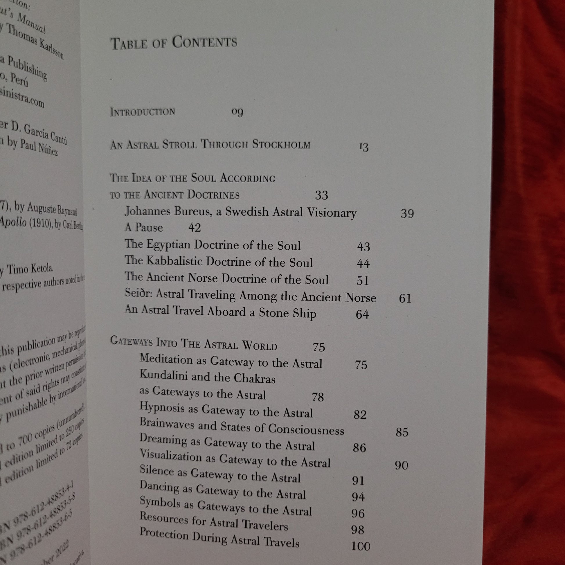 Thomas Karlsson. Astral Projection: The Psychonaut's Manual. Huánuco, Perú: Manus Sinistra Publishing, 2022. Softcover edition. 165 pages.