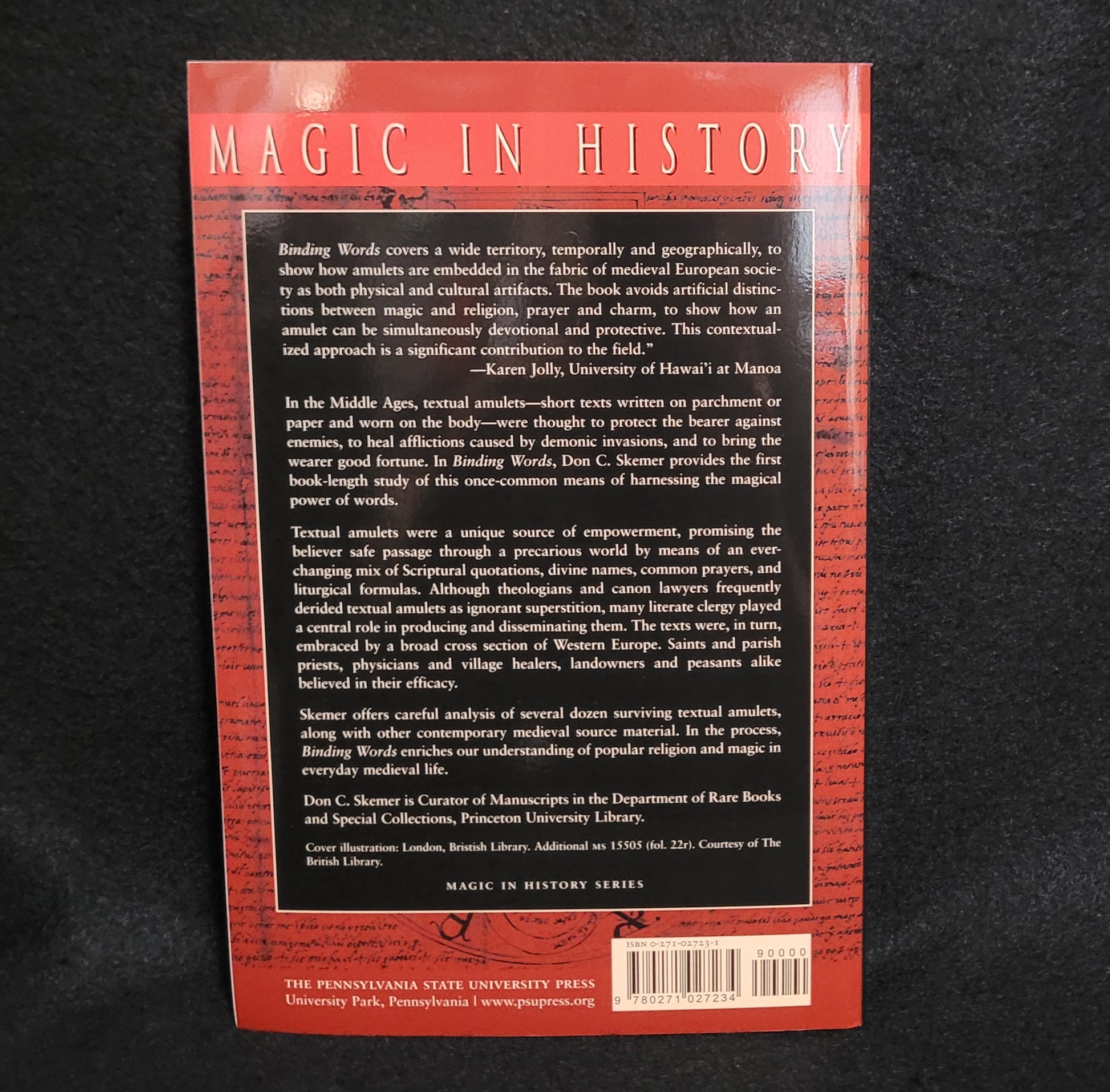 Binding Words: Textual Amulets in the Middle Ages (Magic in History Series) by Don C. Skemer (The Pennsylvania State University Press, 2006) Paperback