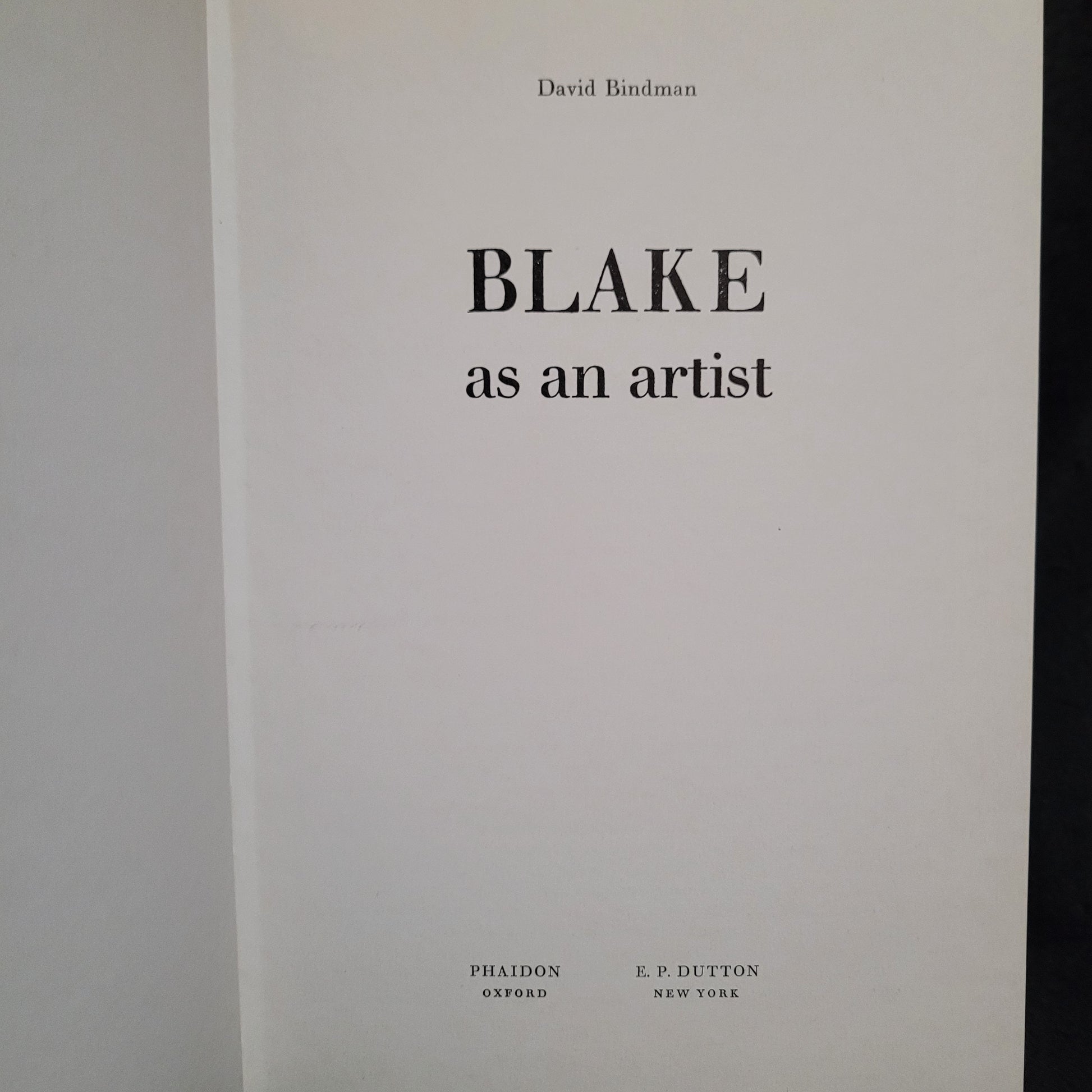 David Bindman. Blake as an artist. London and New York: Phaidon/E.P. Dutton, 1977. Hardcover. 256 pages.