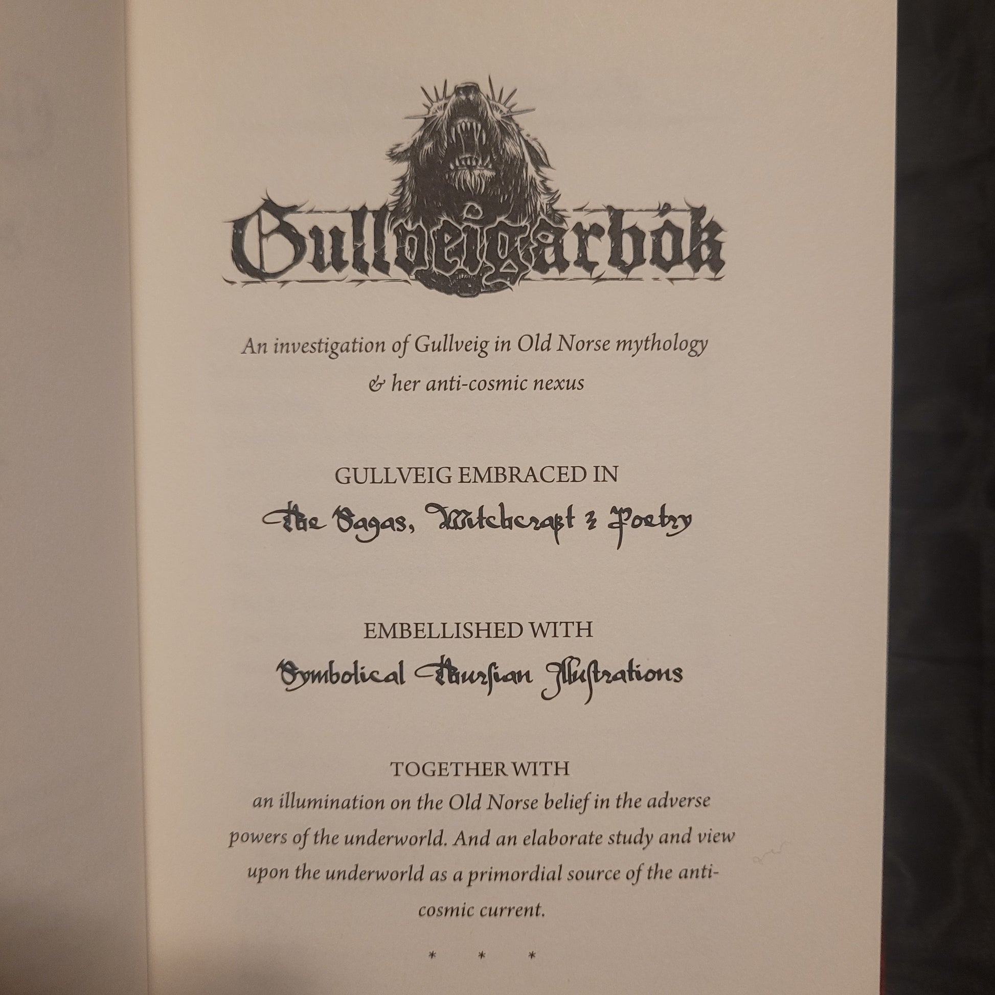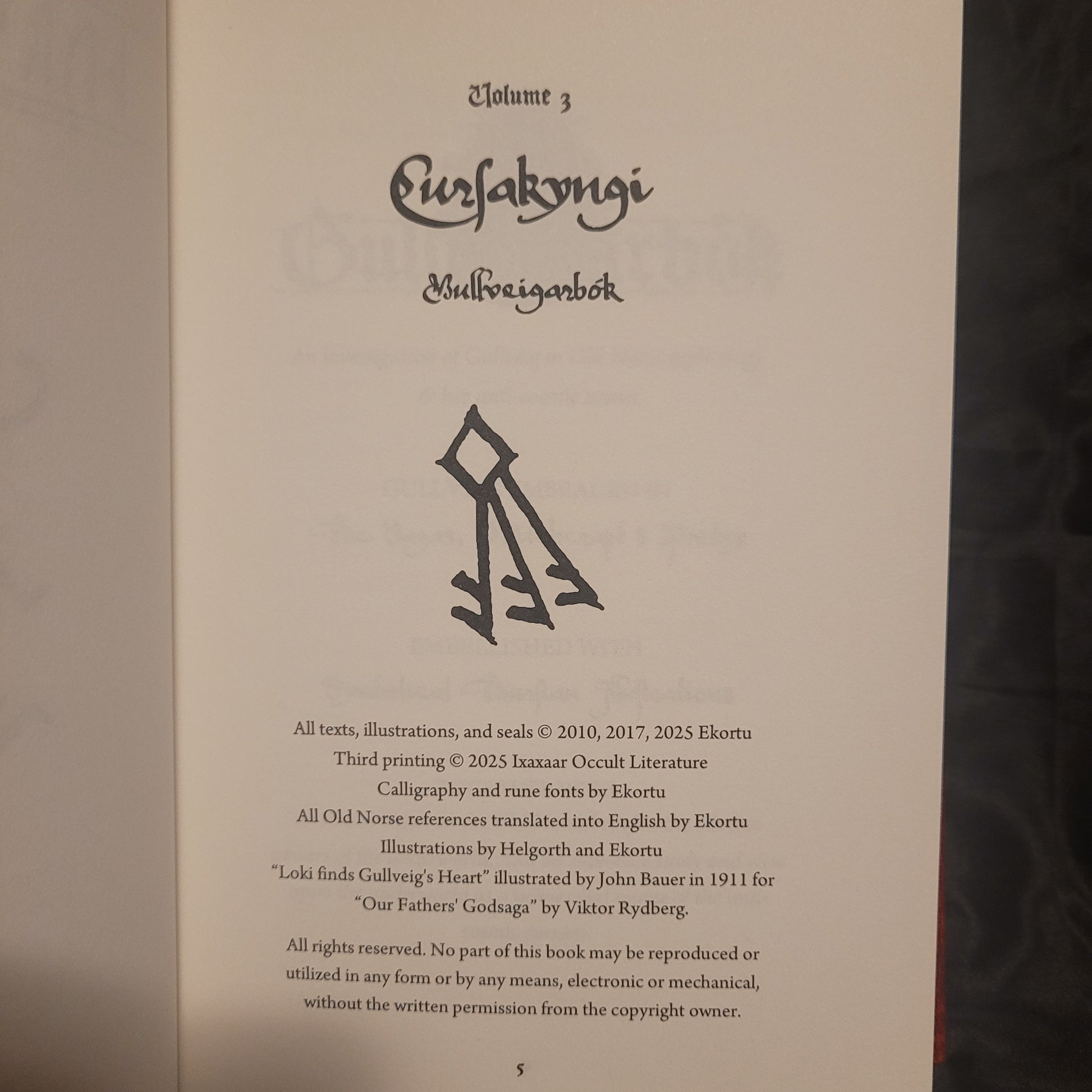 Ekortu. Gullveigarbók. Ixaxaar Occult Literature, 2025. Red Special Edition - Set. 371 pages. Third printing. Includes set of 5 A4 size art prints. Limited to 60 sets.