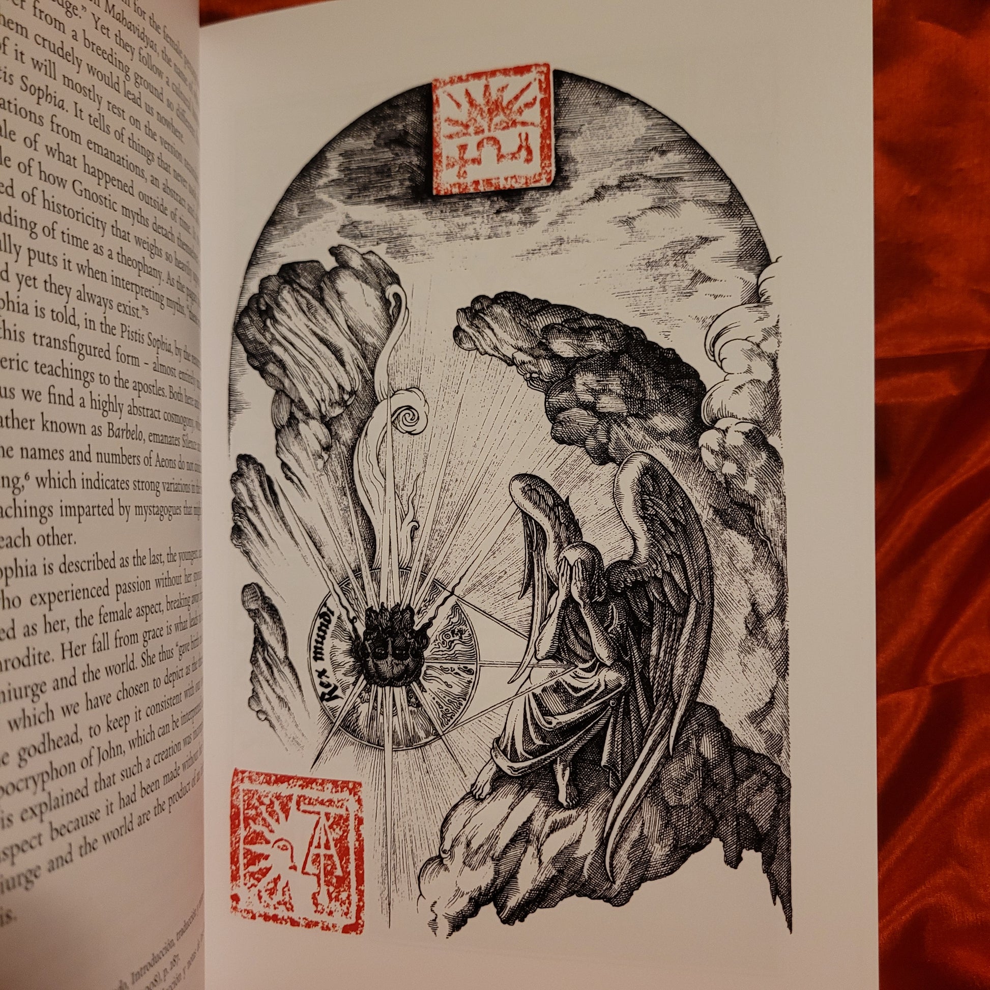 “The three axis, which the images will revolve around, are three distinctive topics of the gnostic worldview: The demiurge (and his relation to the manifested world), the myth of Sophia (and the female aspects of the divine), and the ophite Christology, or the saviour as a serpent.”