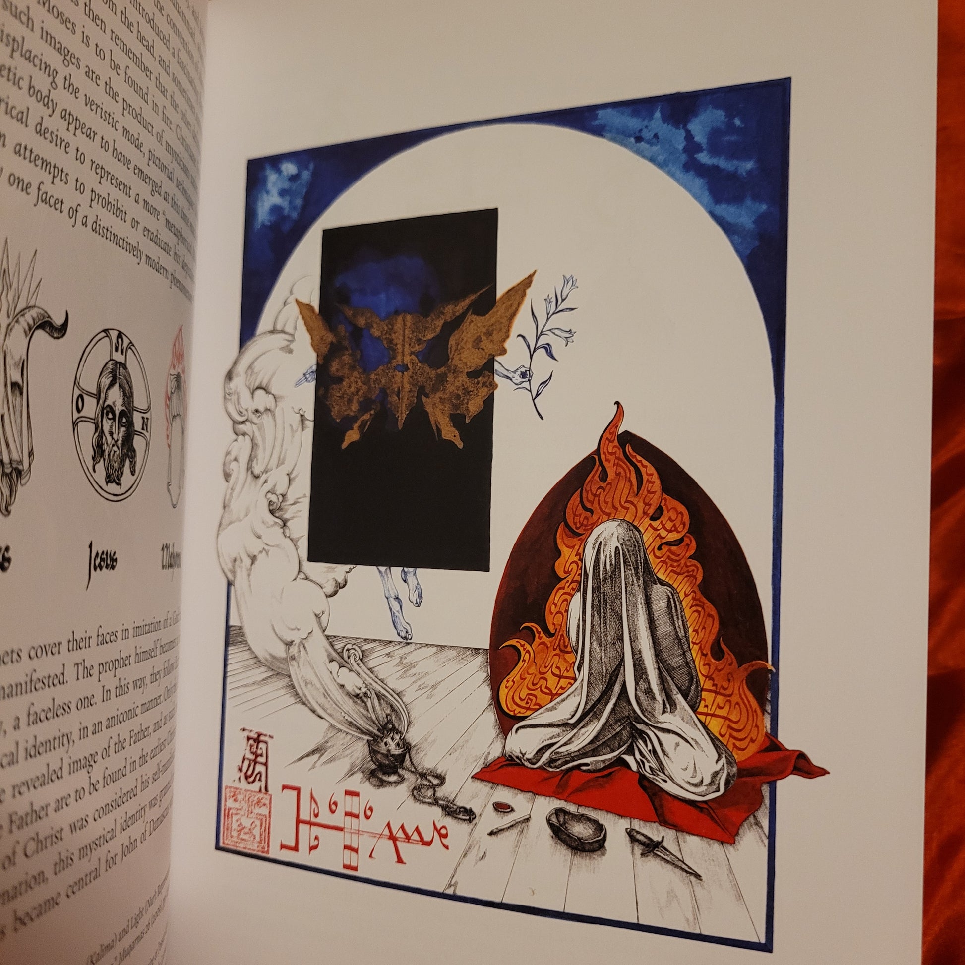 IAO is an iconographic proposal, an attempt to illustrate the Gnostic worldview and its myths as understood by the Ophites, a sect of which little is known. It is, perhaps, an exercise of imagination, of what Christian iconography could have resembled if the Ophites had survived. Visually, it follows the sequences of the Speculum Humanae Salvationis and the Biblia Pauperum, reordering their contents according to this heterodox initiative.