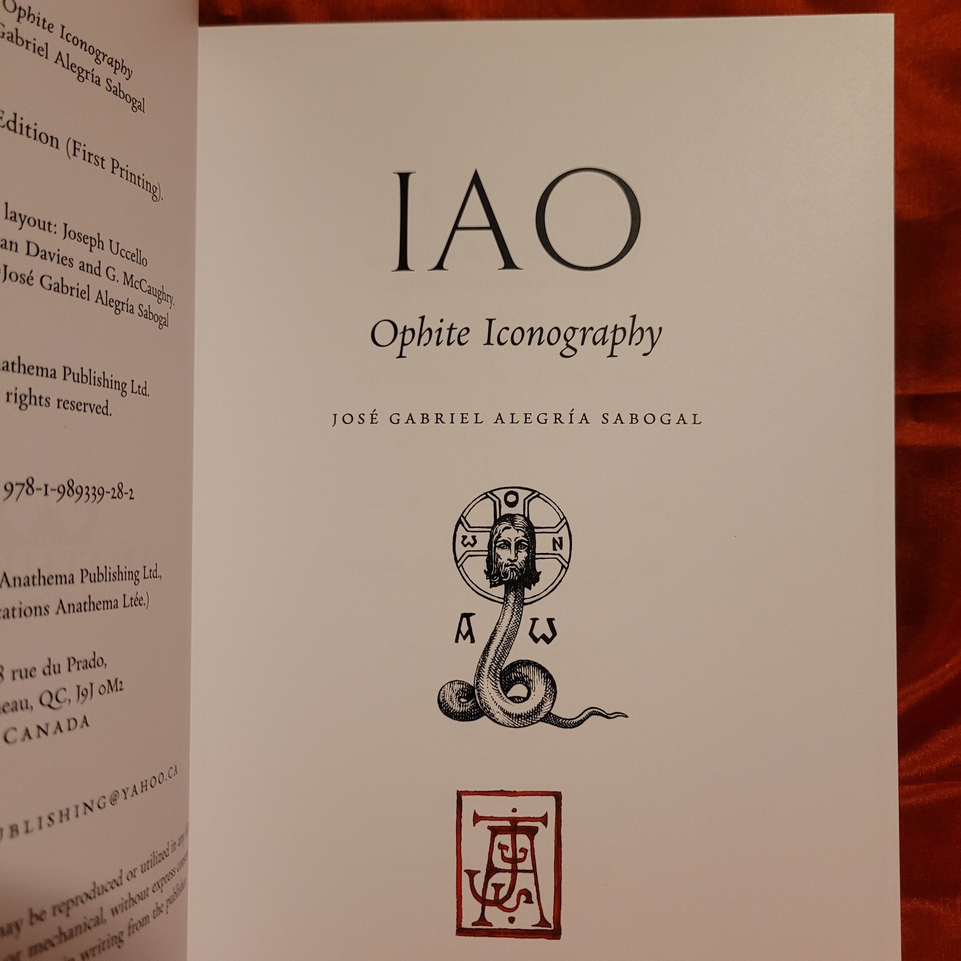 José Gabriel Alegría Sabogal. IAO: Ophite Iconography. Montreal: Anathema Publishing, 2024. Paperback. 224 pages.