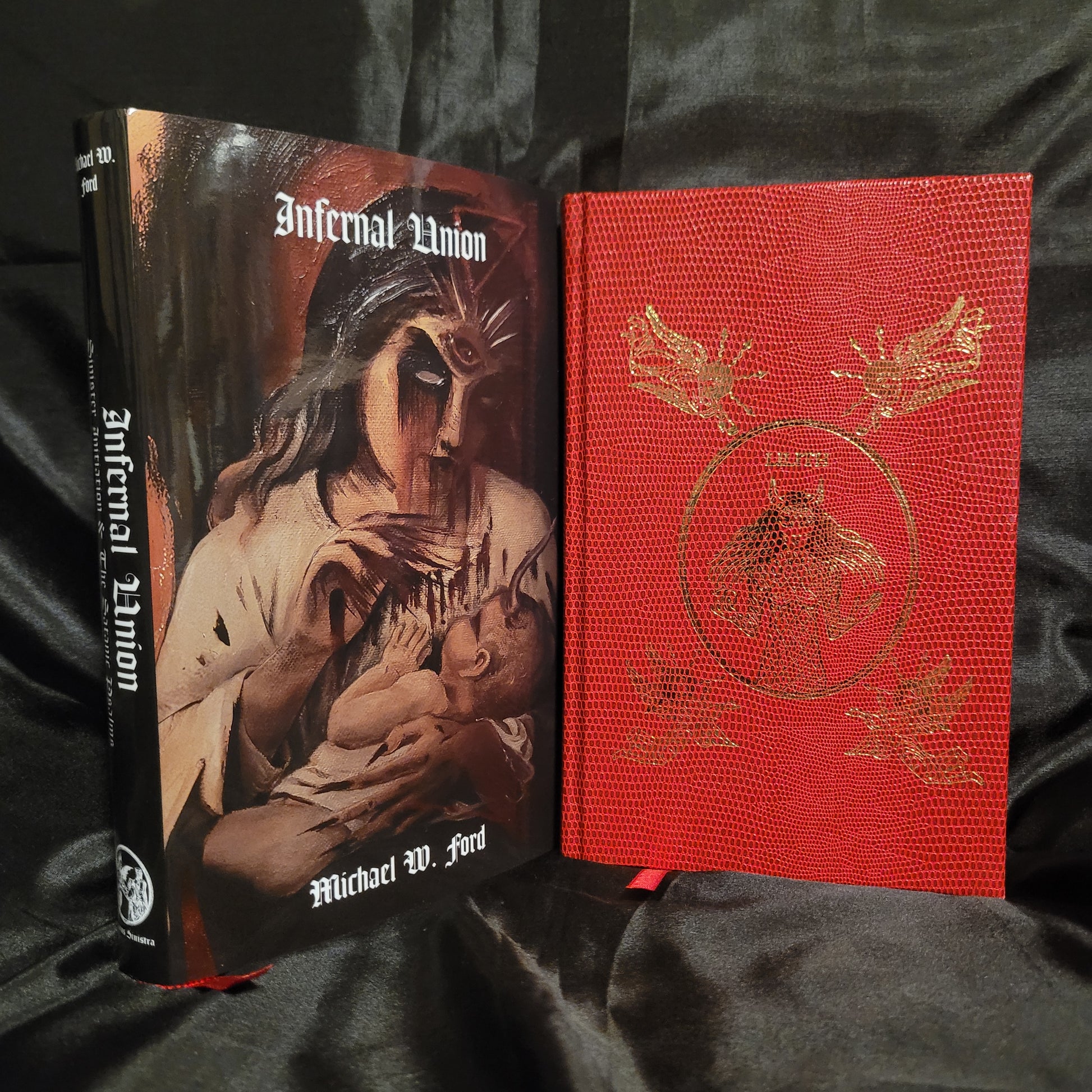 Michael W. Ford Infernal Union: Sinister Initiation & The Satanic Psalms. Huánuco, Perú: Manus Sinistra Publishing, 2024. Hardcover with dust jacket. 341 pages. Limited to 250 hand-numbered copies. Red "Lilith" Version with serpent pattern.