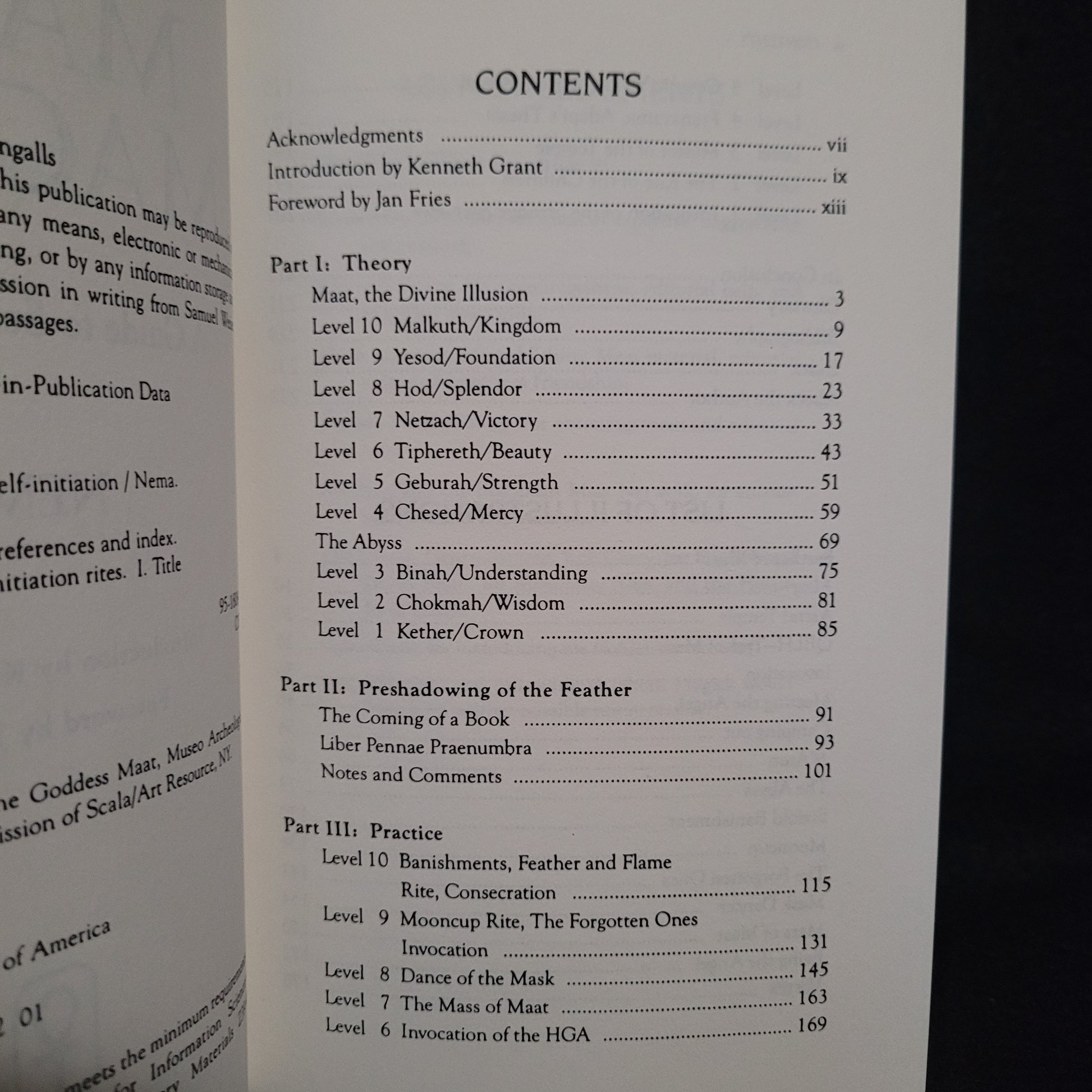Nema. Maat Magick: A Guide to Self-Initiation. Introduction by Kenneth Grant. New York: Weiser Books, 1995. Paperback. 237 pages.