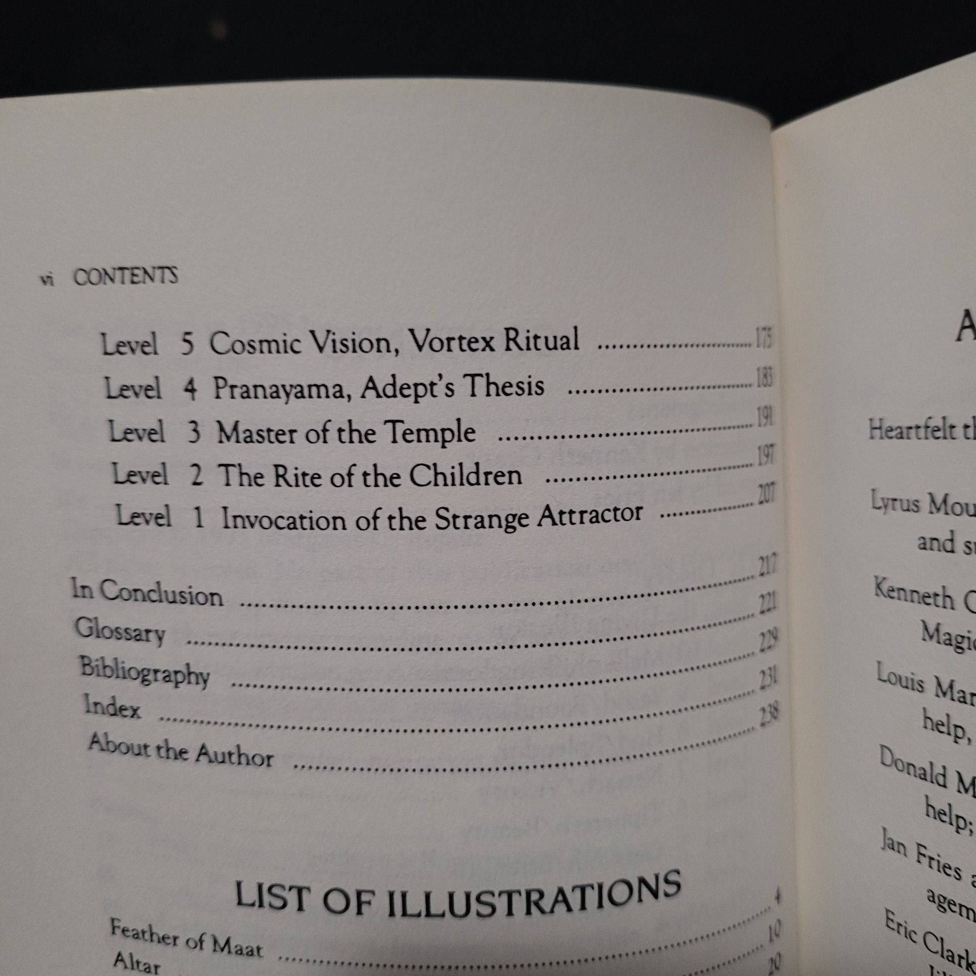 Description from the publisher: "Progressing from Thelemic Magick, Maat Magick transforms the ashes and rubble of the destruction caused by the old formula of the Dying God into a new world society. These rituals are designed for the individual, but can be adapted for group work.Introduction by Kenneth Grant, foreword by Jan Fries. Includes “Liber Pennae Praenumbra,” a document received by Nema while in a visionary trance. Glossary. Bibliography. Index."