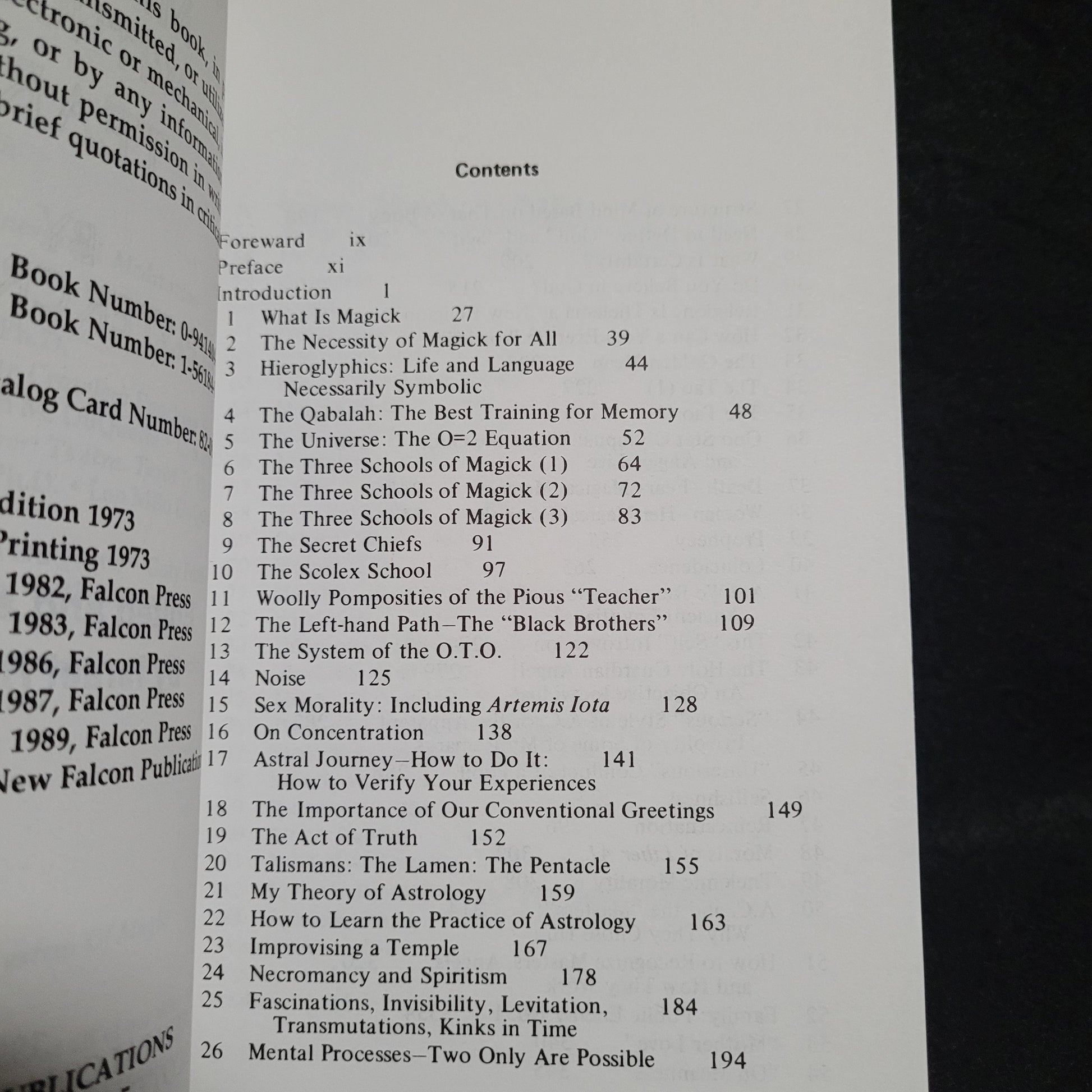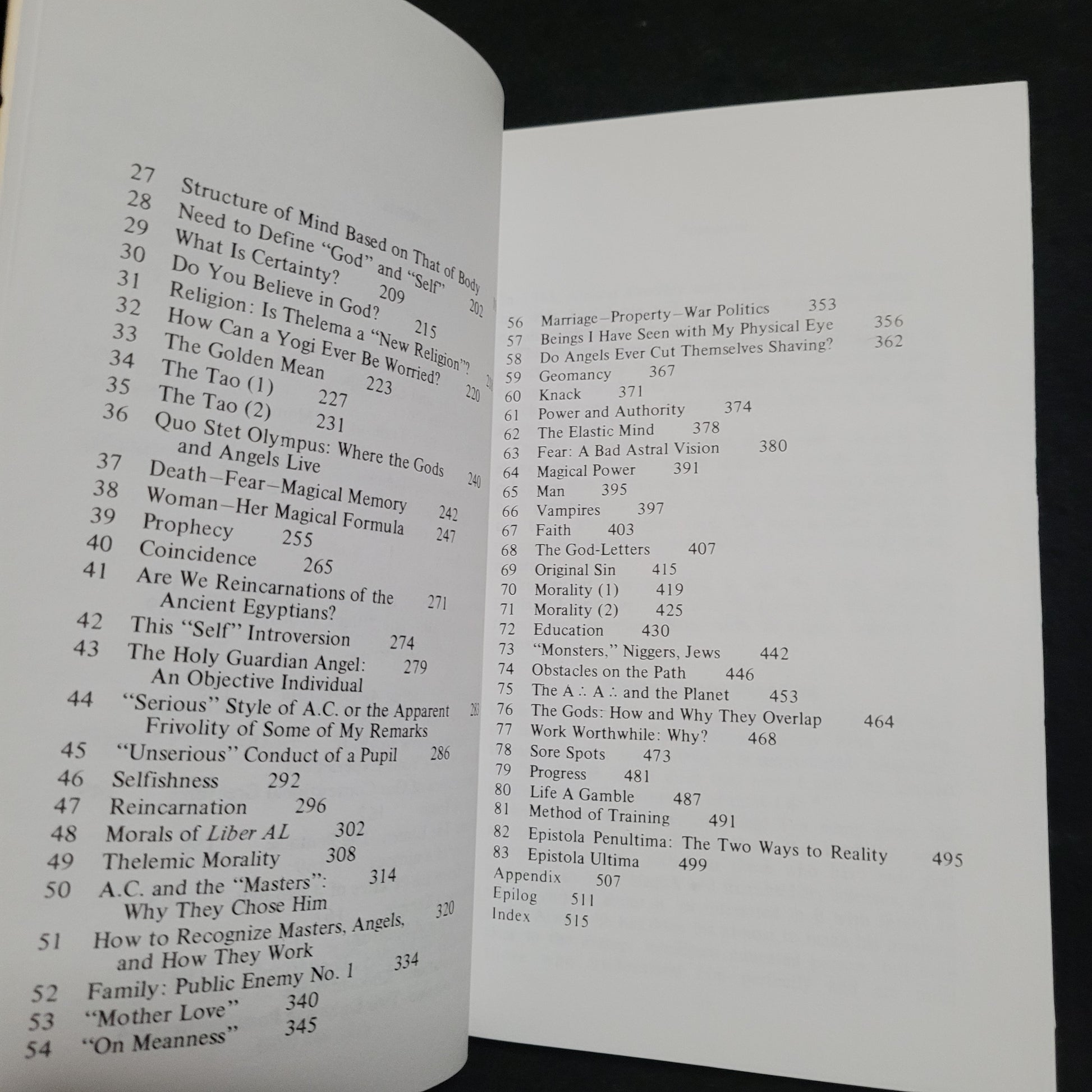 Aleister Crowley. Magick Without Tears. Edited by Israel Regardie. Scottsdale, AZ: New Falcon Publications, 1991. Eighth printing. Paperback. 528 pages.