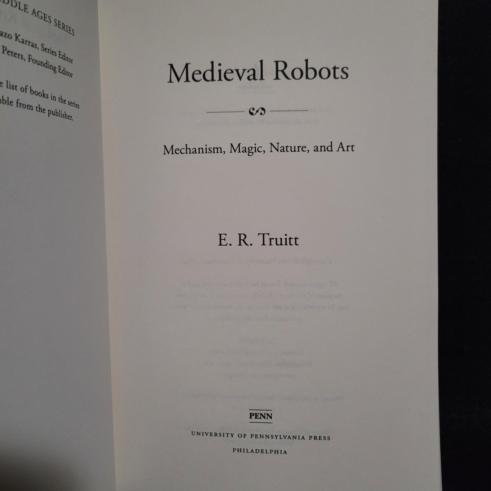 E.A. Truitt. Medieval Robots: Mechanism, Magic, Nature, and Art. Philadelphia, PA: University of Pennsylvania Press, 2015. Paperback. 255 pages.