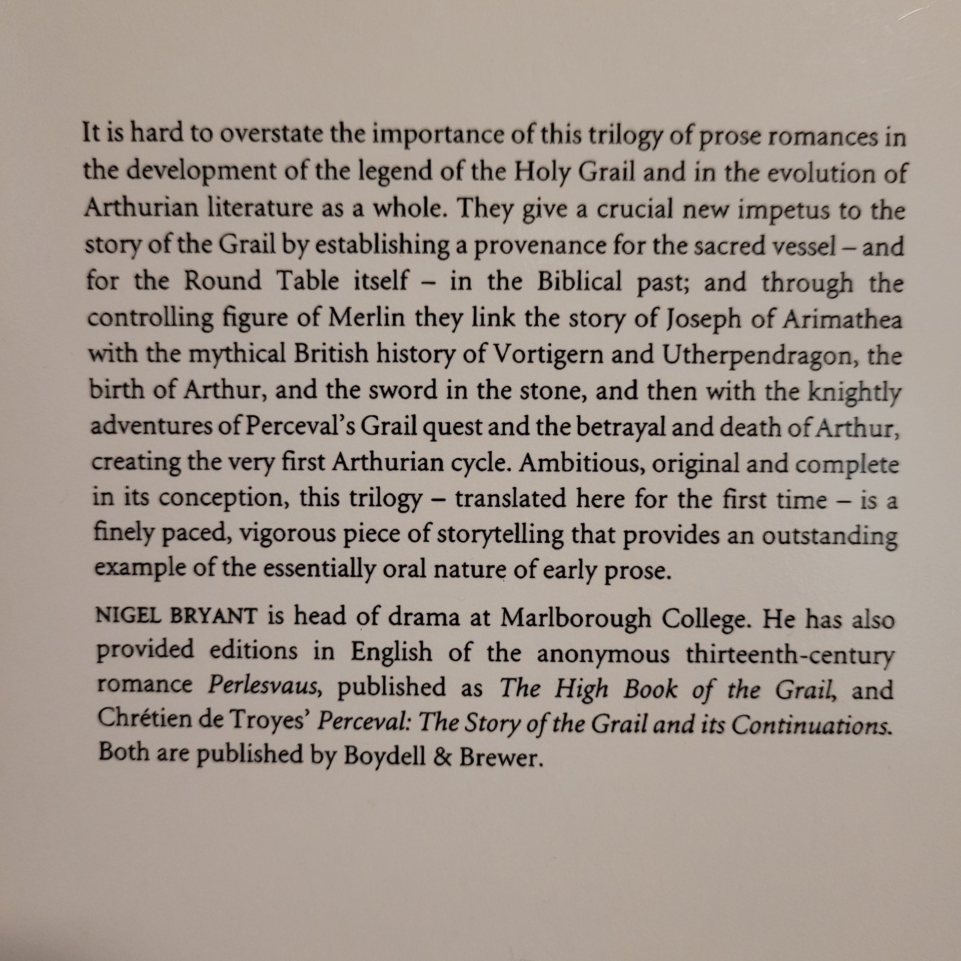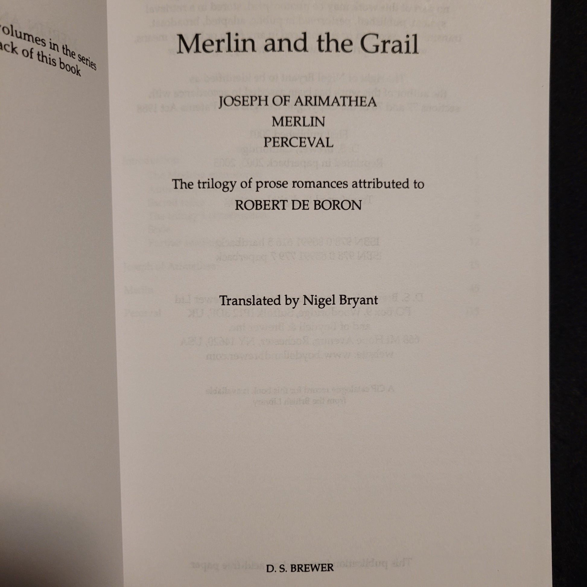 Nigel Bryant. translator. Merlin and the Grail: The Trilogy of Arthurian Romances attributed to Robert de Boron, Arthurian Studies XLVIII. Cambrige: D.S. Brewer, 2005. Paperback. 172 pages.
