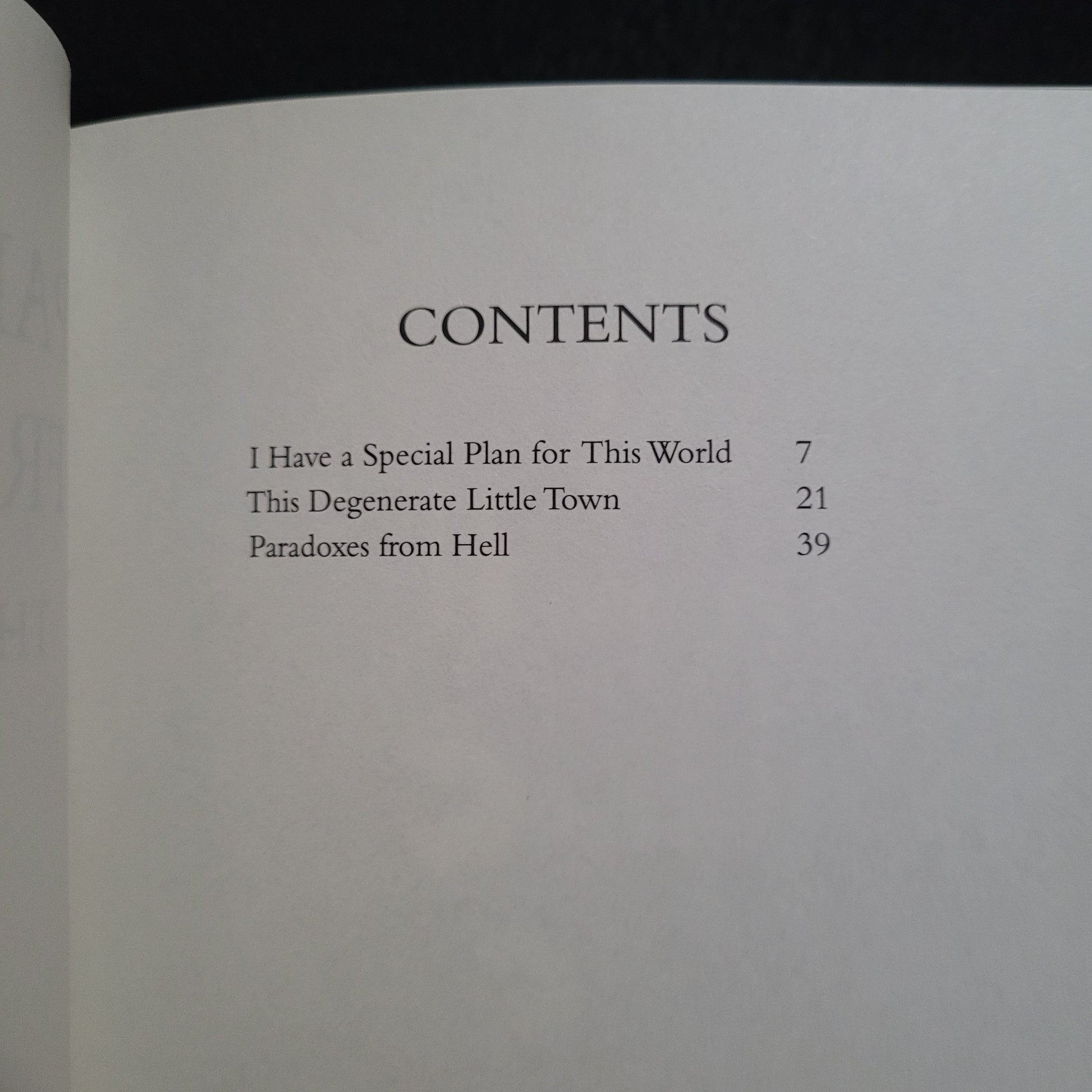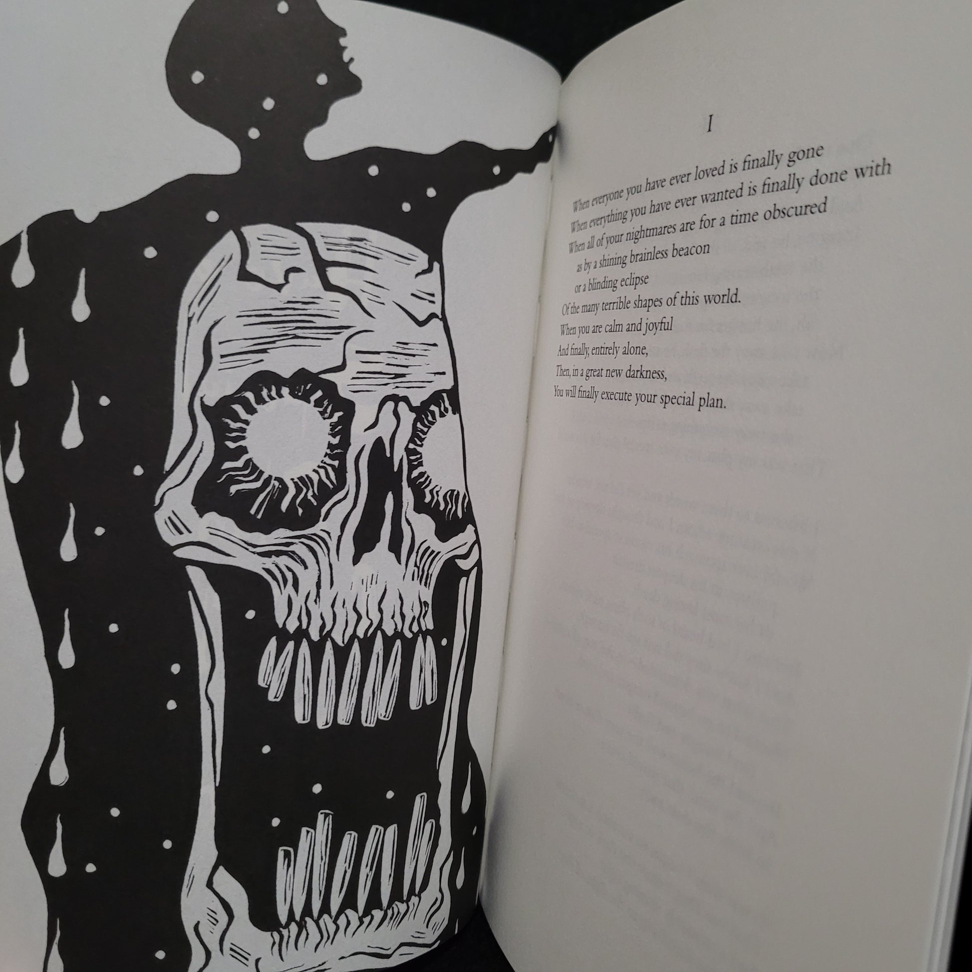 The opening section, "I Have a Special Plan for This World," is a metaphysical poetry cycle in which its visionary protagonist is driven by his loathing of existence. His plan, which seeks no less than the unmaking of the universe itself, seeks to “envision a darkness/That was long before the dark of night/And a strangely shining light/That owed nothing to the light of day.” This remarkable piece is unveiled here for the first time since its original limited publication by Durtro in 2006.