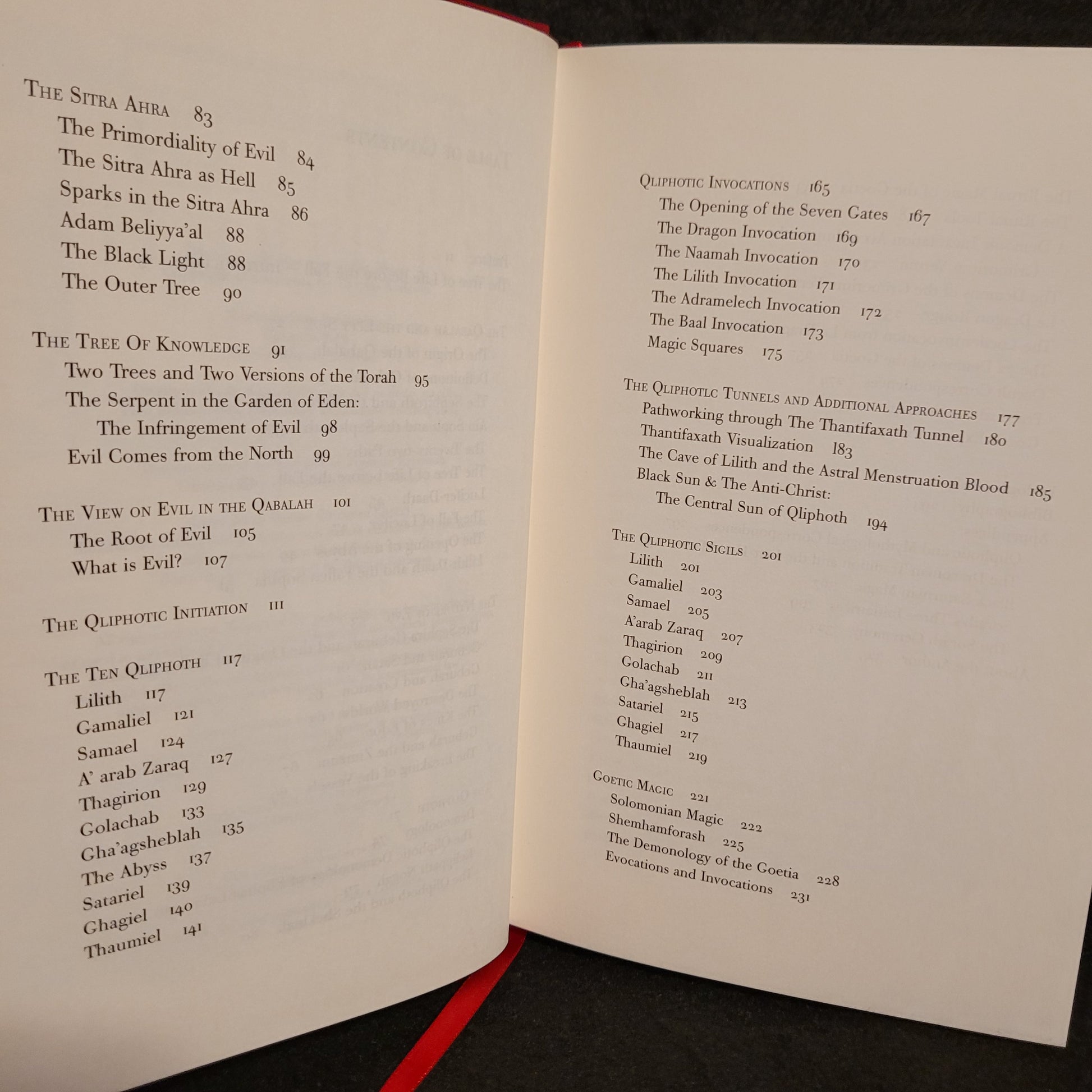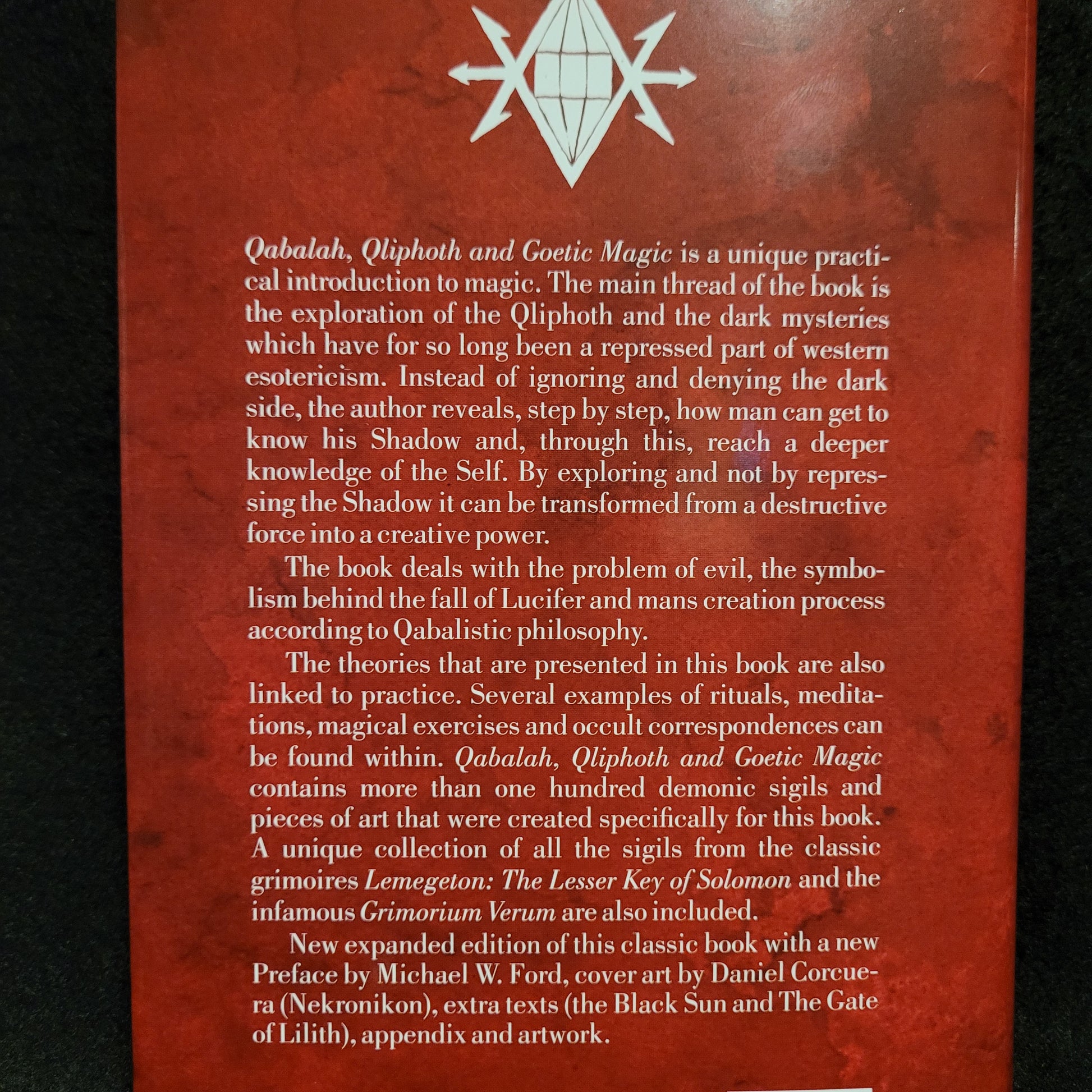 Description from the publisher: Qabalah, Qliphoth and Goetic Magic is a unique practical introduction to magic. The main thread of the book is the exploration of the Qliphoth and the dark mysteries which have for so long been a repressed part of western esotericism. Instead of ignoring and denying the dark side, the author reveals, step by step, how man can get to know his Shadow and, through this, reach a deeper knowledge of the Self. By exploring and not by repressing the Shadow it can be transformed from a destructive force into a creative power. The book deals with the problem of evil, the symbolism behind the fall of Lucifer and mans creation process according to Qabalistic philosophy. The theories that are presented in this book are also linked to practice. Several examples of rituals, meditations, magical exercises and occult correspondences can be found within. Qabalah, Qliphoth and Goetic Magic contains more than one hundred demonic sigils and pieces of art that were created specifically for this book. A unique collection of all the sigils from the classic grimoires Lemegeton: The Lesser Key of Solomon and the infamous Grimorium Verum are also included.