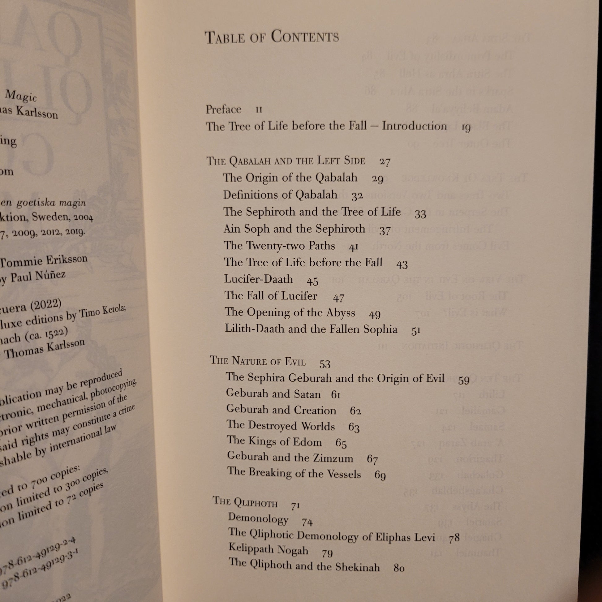 Thomas Karlsson. Qabalah, Qliphoth and Goetic Magic. Huánuco, Perú: Manus Sinistra Publishing, 2024. Hardcover. 325 pages. Limited to 300 hand-numbered copies. This new hardcover edition is available exclusively from Arcane Offerings.