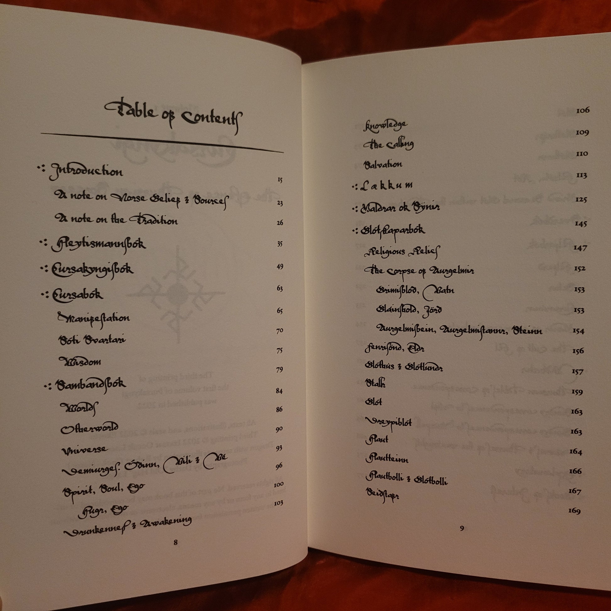 The first book will be an offering and dedication to the primordial powers beyond the ordered universe. May the Flames of Surtr be the essence of this book and the Poisonous Blood of Aurgelmir flow as and through its ink.