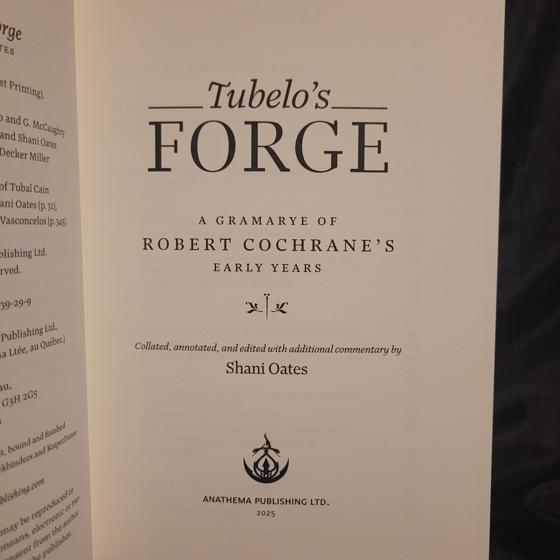 Shani Oates, Tubelo’s Forge: A Gramarye of Robert Cochrane’s Early Years. Pont Rouge, QC; Anathema Publishing, 2025. Collector's Edition. 368 pages. Limited to approx. 750 copies. Fully Illustrated by Johnny Decker Miller.