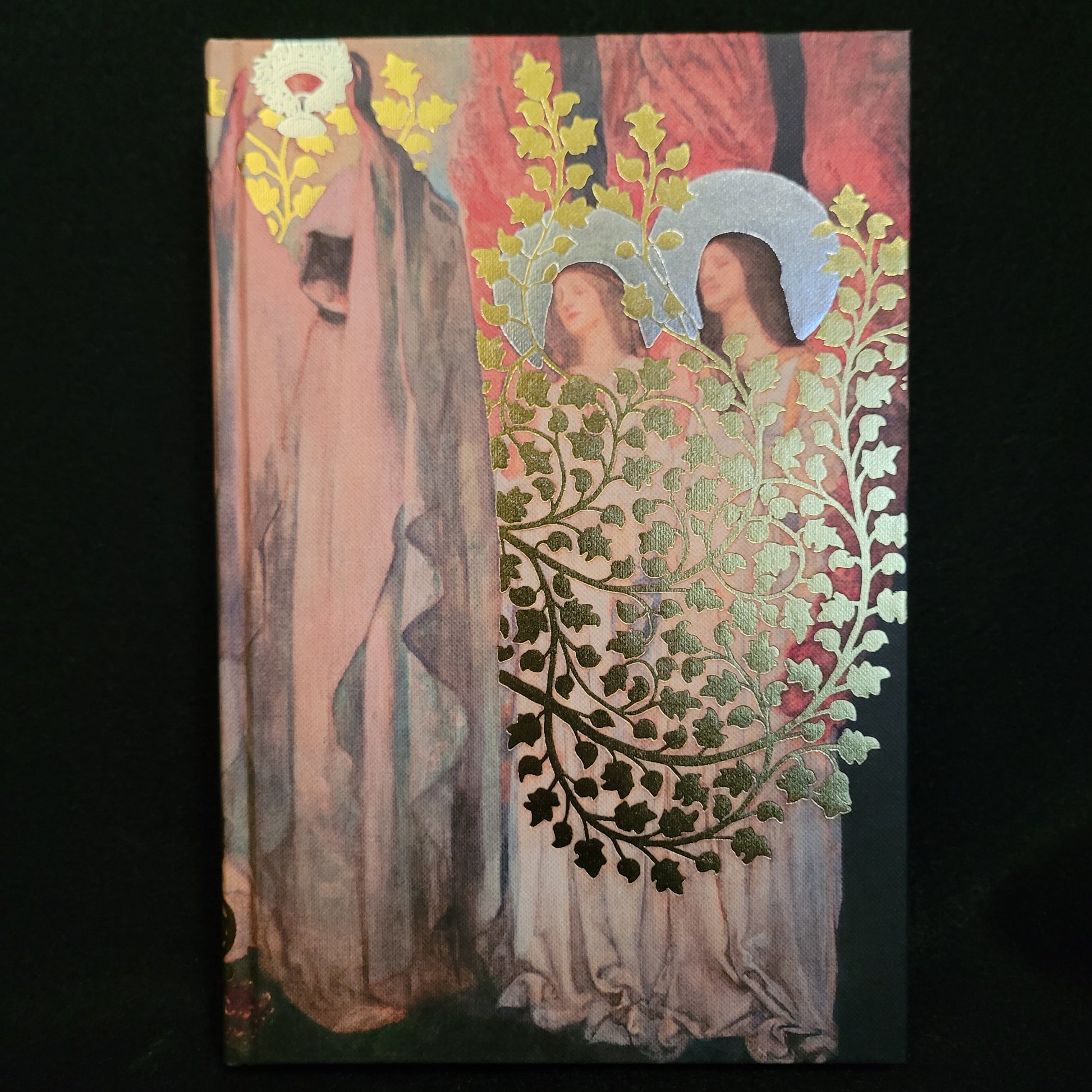 The Secret Glory is a sewn hardback book of 287pp, printed lithographically with silk ribbon marker, decorated boards, and head and tailbands.
